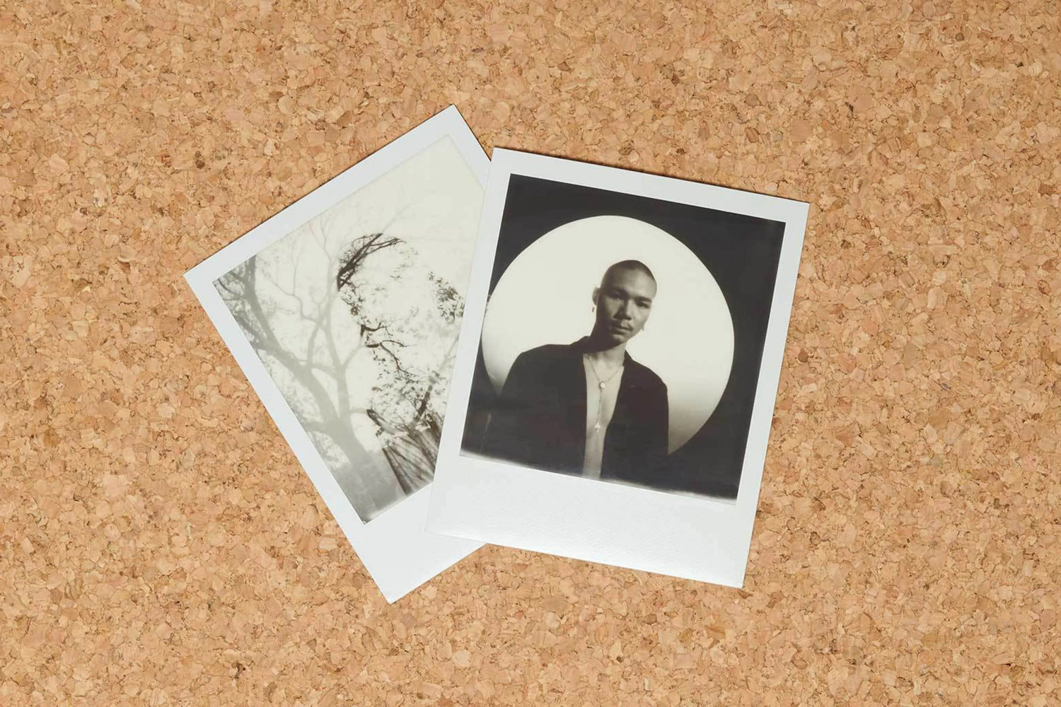 8枚のインスタントフィルムを、ポラロイド伝統のスクエアフォーマットのホワイトフレームに収めました。i-Type用の高感度モノクロフィルムです。
