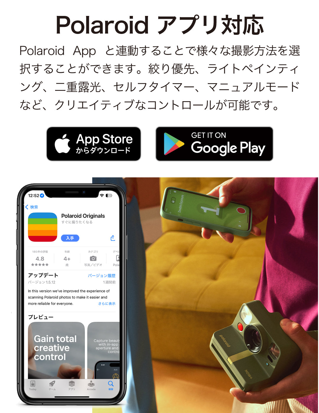 Polaroid Now+ 第2世代 i-Type インスタントカメラ + 5 lens Filters Forest Green